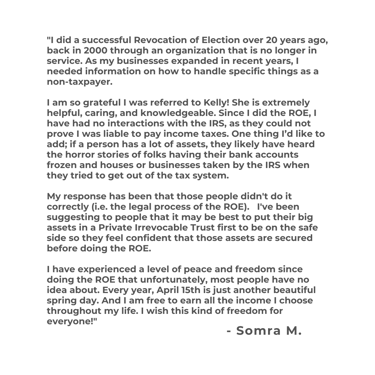 A: Once you submit the correct documentation and your ROE is complete the IRS must legally remove you from the federal income tax system, and return you to your American National status.