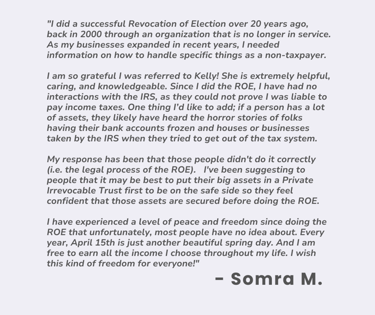 A: Once you submit the correct documentation and your ROE is complete the IRS must legally remove you from the federal income tax system, and return you to your American National status.